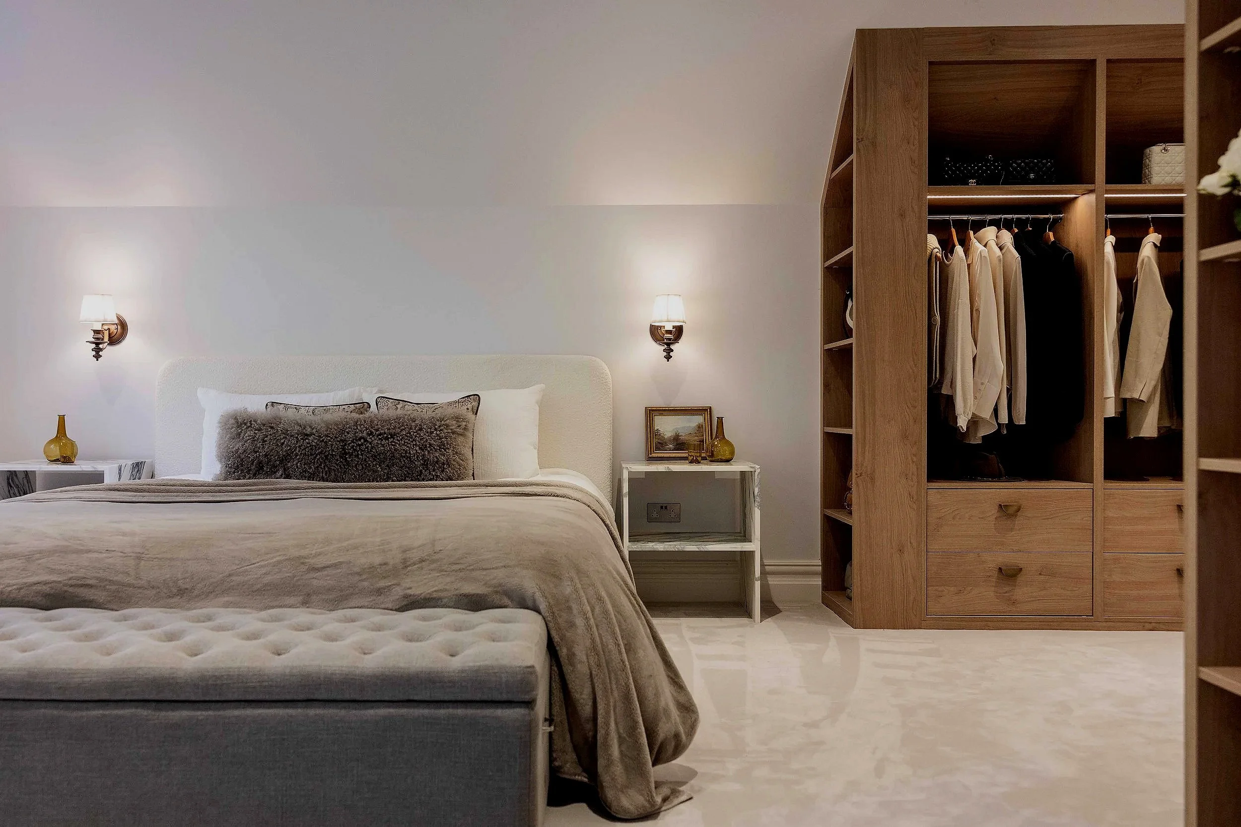 We design and install bespoke dressing rooms and walk‑in wardrobes across Oxfordshire, London and the surrounding counties. Working with homeowners, interior designers and architects, we create calm, architectural spaces with tailored storage, premium materials and precise detailing — all crafted in our Oxfordshire workshop.